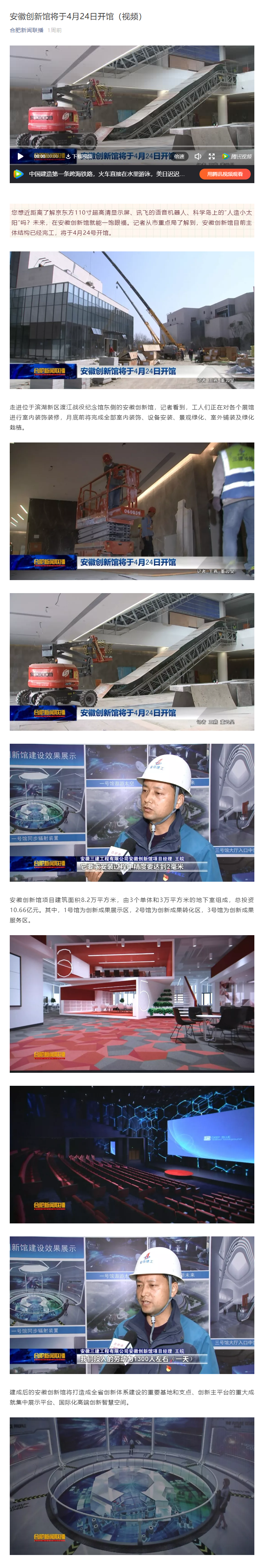 合肥新聞聯(lián)播微信公眾號——安徽創(chuàng)新館將于4月24日開館