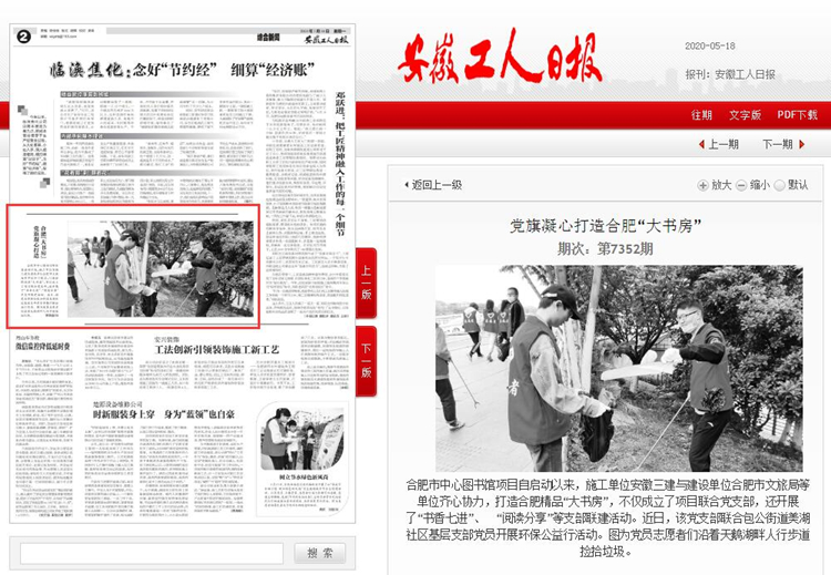 安徽工人日報——黨旗凝心打造合肥“大書房” 發(fā)布時間:2020-05-18 來源:安徽工人日報 撰稿人:李艷麗 瀏覽次數(shù):20474 報道鏈接:http://epaper.xunbaoah.com/index/article/articleinfo?doc_id=3334