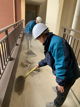 共有2名黨員,20多名團員參加此次義務(wù)勞動。在黨員同志的模范帶頭下,大家深入三期工程現(xiàn)場,圍繞工程竣工收尾階段對高層25#、26#、27#樓進行衛(wèi)生清理,主要清掃每層樓的公共區(qū)域及連廊部分。雖然天氣寒冷,但是大家熱情高漲、干勁十足。大家分工合作,由上至下,不放過每一個角落的垃圾。3個多小時的共同努力下,大家共完成了102層樓的衛(wèi)生清理工作。