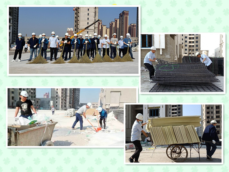 5月1日是贊美勞動者的日子,大連公司各項目組織義務勞動活動致敬最美勞動者。各區(qū)域項目職工主動的開展清掃現(xiàn)場、規(guī)程材料的義務勞動活動,用他們的實際行動充分展現(xiàn)著“我勞動,我快樂”的精神。其中,煙臺項目部30余名管理人員共清理現(xiàn)場建筑垃圾30余車,搬運保溫材料20立方,搬放鋼絲網片5立方;濟南瀾湖郡幼兒園小學項目,10余名管理人員共規(guī)整鋼管、木方等現(xiàn)場材料10立方,為項目現(xiàn)場栽種綠植共10平米;大連金連領地項目部共15名管理人員集中清掃施工現(xiàn)場600平,綠網鋪蓋露土共1000平米。辛苦勞動后,項目現(xiàn)場恢復整潔,職工們邊擦汗水邊喊著“勞動最光榮!”。