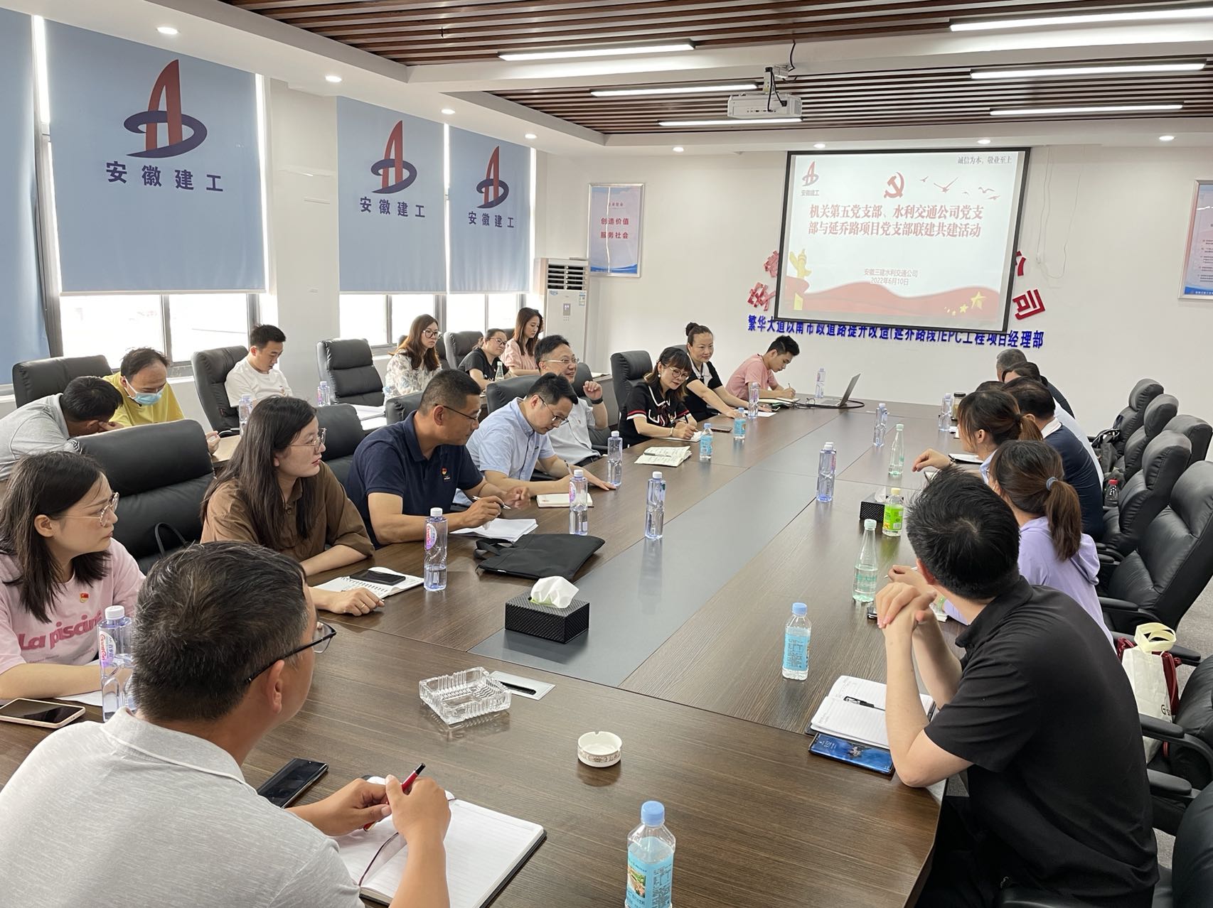 延喬路項目聯(lián)合黨支部,成立于2022年4月,由安徽三建水利交通公司牽頭,建設(shè)方、監(jiān)理方、設(shè)計方、分包方共同參與,現(xiàn)有項目黨員8人。項目黨支部在集團(tuán)及公司黨委的正確領(lǐng)導(dǎo)下,圍繞“五紅”創(chuàng)建內(nèi)容即傳紅色基因、建紅色陣地、開紅色講堂、爭紅色先鋒、創(chuàng)紅色聯(lián)建為出發(fā)點(diǎn)加強(qiáng)項目支部建設(shè)。積極學(xué)習(xí)貫徹習(xí)近平新時代中國特色社會主義思想,全面貫徹落實(shí)黨的十九大和十九屆歷次全會精神,增強(qiáng)“四個意識”、堅定“四個自信”、做到“兩個維護(hù)”,堅決執(zhí)行黨的路線方針政策,努力發(fā)揮基層黨組織的戰(zhàn)斗堡壘作用和黨員先鋒模范作用。