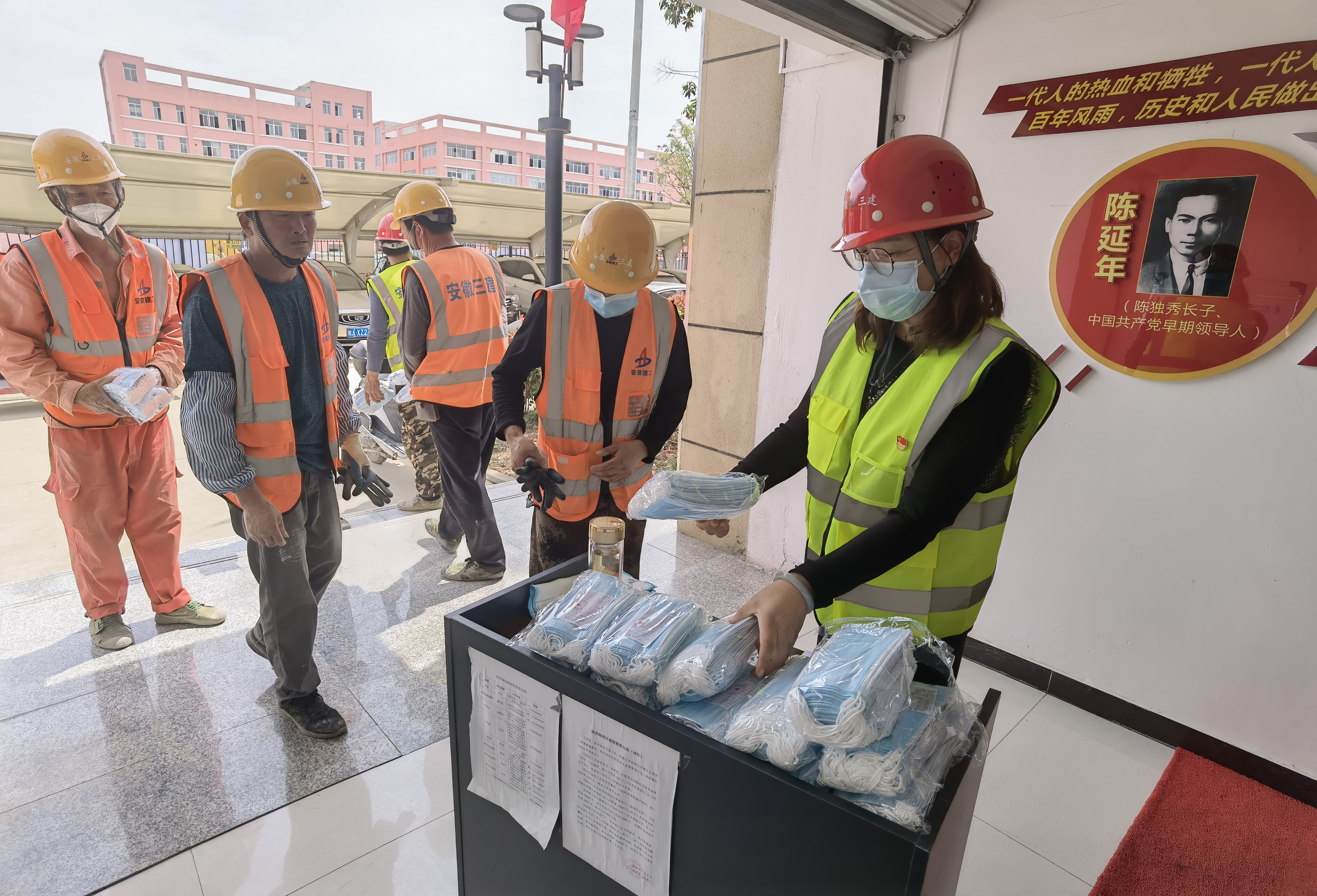 延喬路項目門樓圍繞著陳延年、陳喬年的一生經(jīng)歷,以安徽徽派建筑、廣州木棉花、法國凱旋門、上海石庫門元素設(shè)計而成,此設(shè)計雕塑模型將成為延喬路永久性建筑,被命名為穿越之門,具有重要的歷史意義。延喬路項目聯(lián)合黨支部積極打造黨員活動室、農(nóng)民工業(yè)余學(xué)校,VR體驗(yàn)區(qū)、紅色長廊等“紅色陣地”,為項目黨員及一線員工提供良好的學(xué)習(xí)氛圍,感受紅色文化的強(qiáng)大力量,并在這文化的熏陶下,將紅色精神融入到項目生產(chǎn)建設(shè)中來,發(fā)揚(yáng)“特別能吃苦,特別能戰(zhàn)斗”的企業(yè)作風(fēng)。