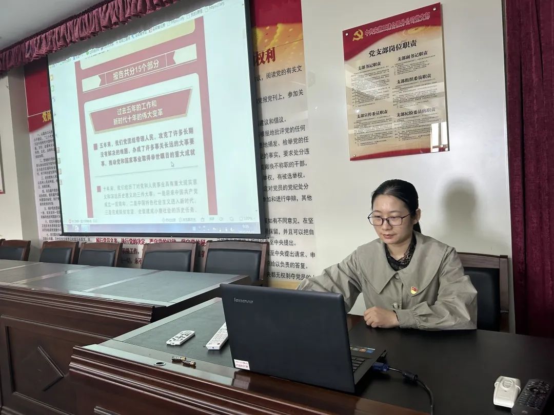 為深入學(xué)習(xí)貫徹黨的二十大精神,在機(jī)關(guān)迅速掀起學(xué)習(xí)貫徹的熱潮,10月31日,總支組織“云端黨課”學(xué)習(xí)宣貫黨的二十大精神。黨支部副書記陽海英以《踔厲奮發(fā),勇毅前行——聚焦中國共產(chǎn)黨第二十次代表大會》為主題,詳細(xì)解讀二十大報告提出的十五個部分的內(nèi)容,結(jié)合機(jī)關(guān)實際工作對二十大報告進(jìn)行了深入淺出的解讀,認(rèn)真研讀黨的二十大報告和黨章,領(lǐng)悟黨的二十大提出的新思想、新論斷,深刻領(lǐng)會報告精神實質(zhì)。