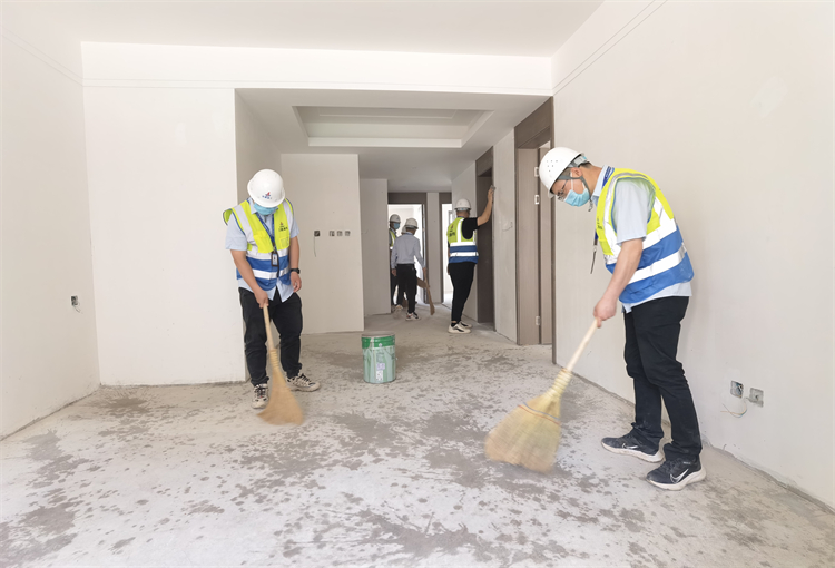 裝飾公司雄安容西B3標(biāo)段項(xiàng)目部組織項(xiàng)目青年職工拿著掃帚、抹布、水桶進(jìn)行室內(nèi)衛(wèi)生清理,現(xiàn)場(chǎng)青年職工們斗志昂揚(yáng),場(chǎng)面熱火朝天,共同為6月30日的全面交付努力奮斗。